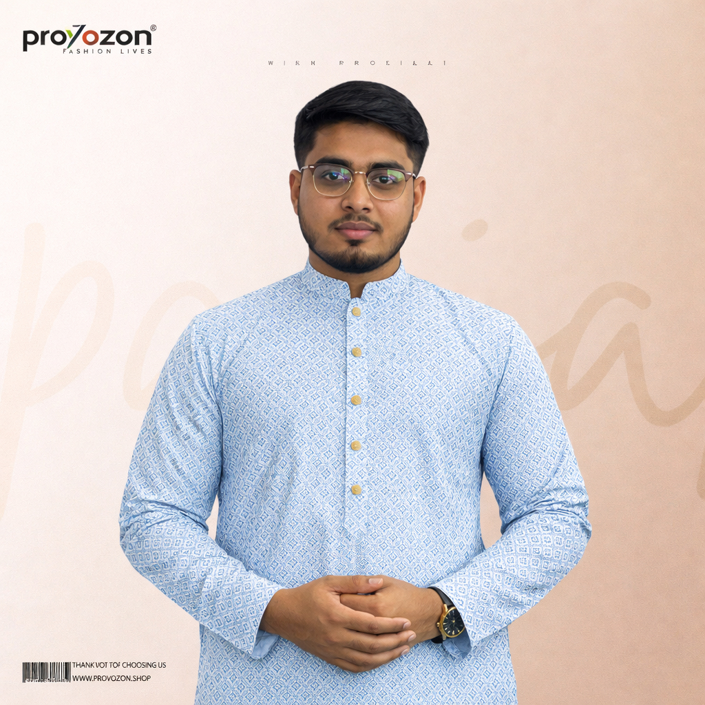 এই Royal Sky Blue Designer Panjabi আধুনিক ফ্যাশন ও ট্র্যাডিশনাল স্টাইলের একটি সুন্দর সমন্বয়। প্রিমিয়াম ফ্যাব্রিক ও নিখুঁত সেলাইয়ের কারণে এটি দেখতে যেমন স্টাইলিশ, পরতেও তেমনি আরামদায়ক। যেকোনো স্পেশাল অনুষ্ঠান বা ফেস্টিভ সিজনের জন্য এটি একটি পারফেক্ট চয়েস।